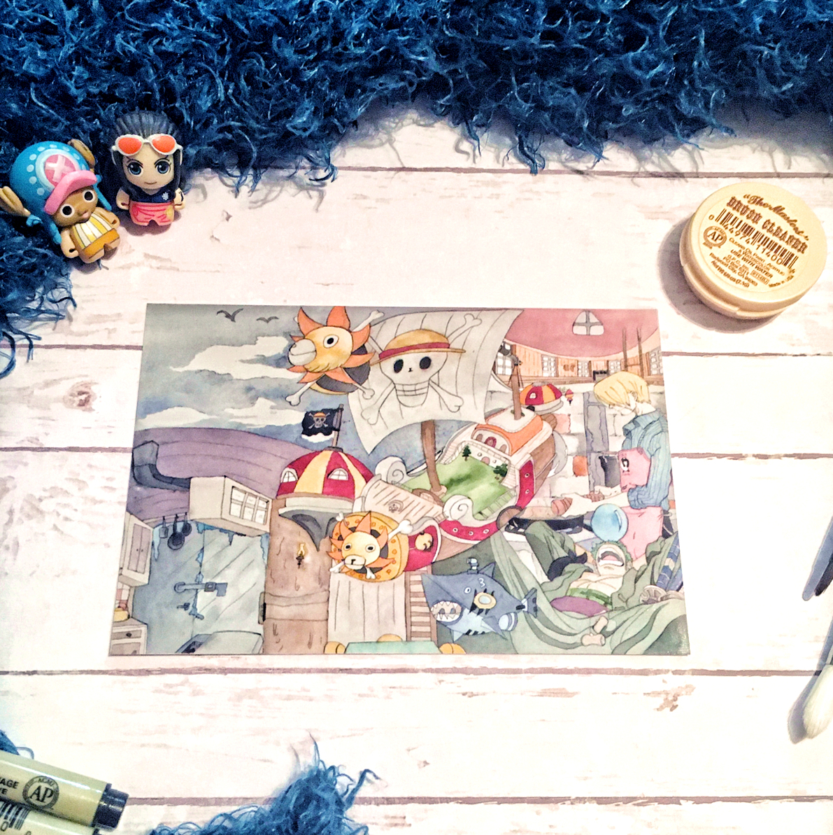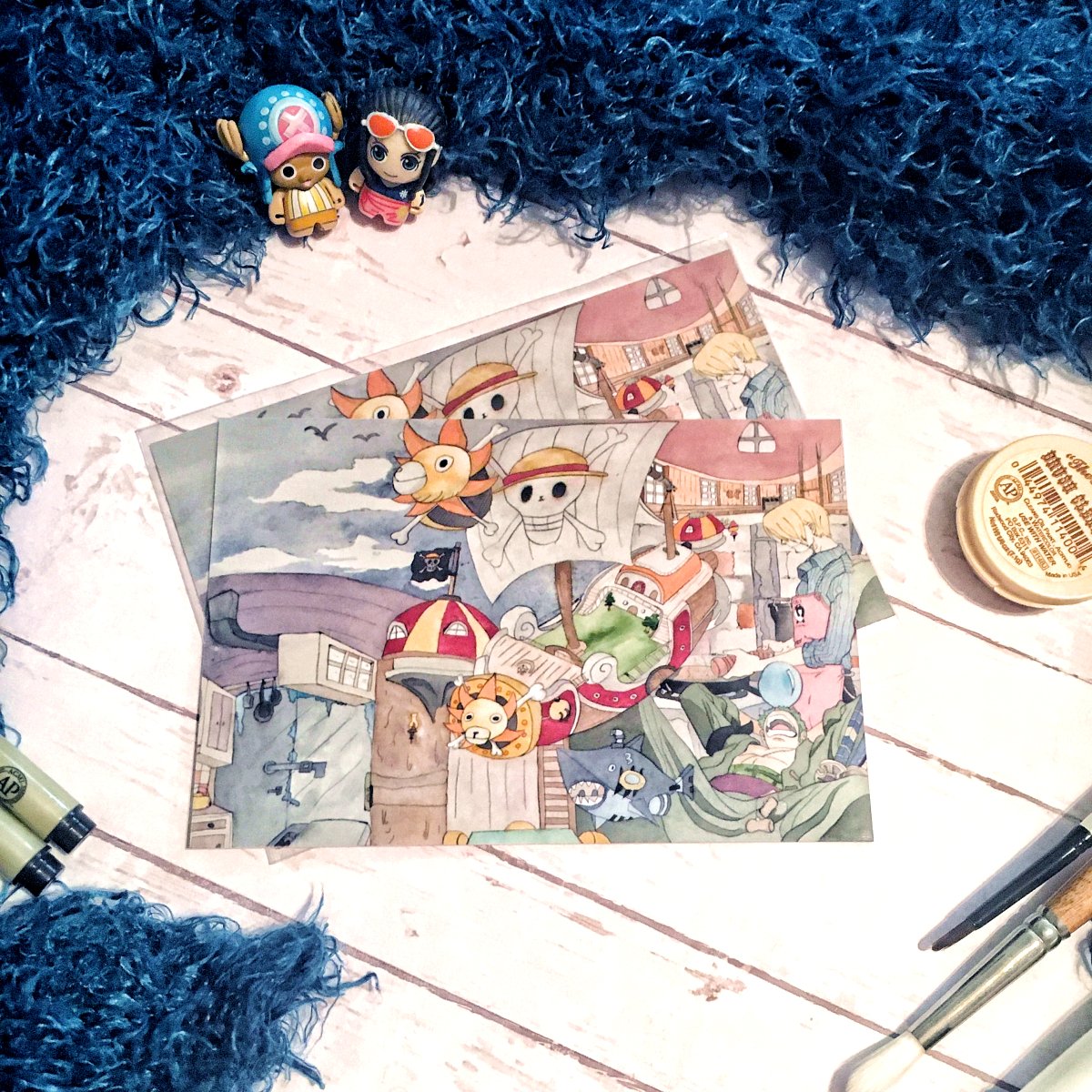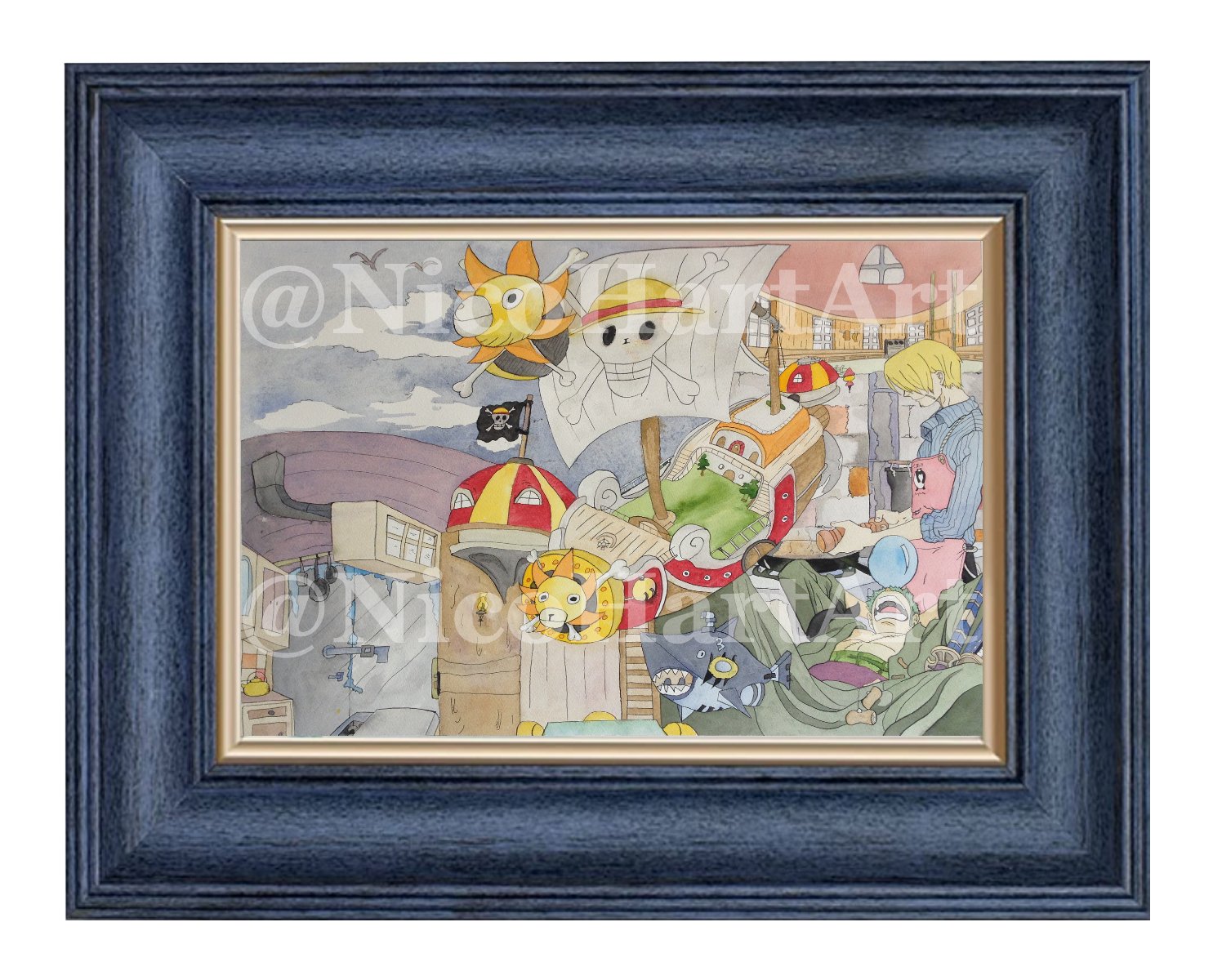 Fanart of the Sunny Go, Zoro, Sanji, and their personal spaces on the ship