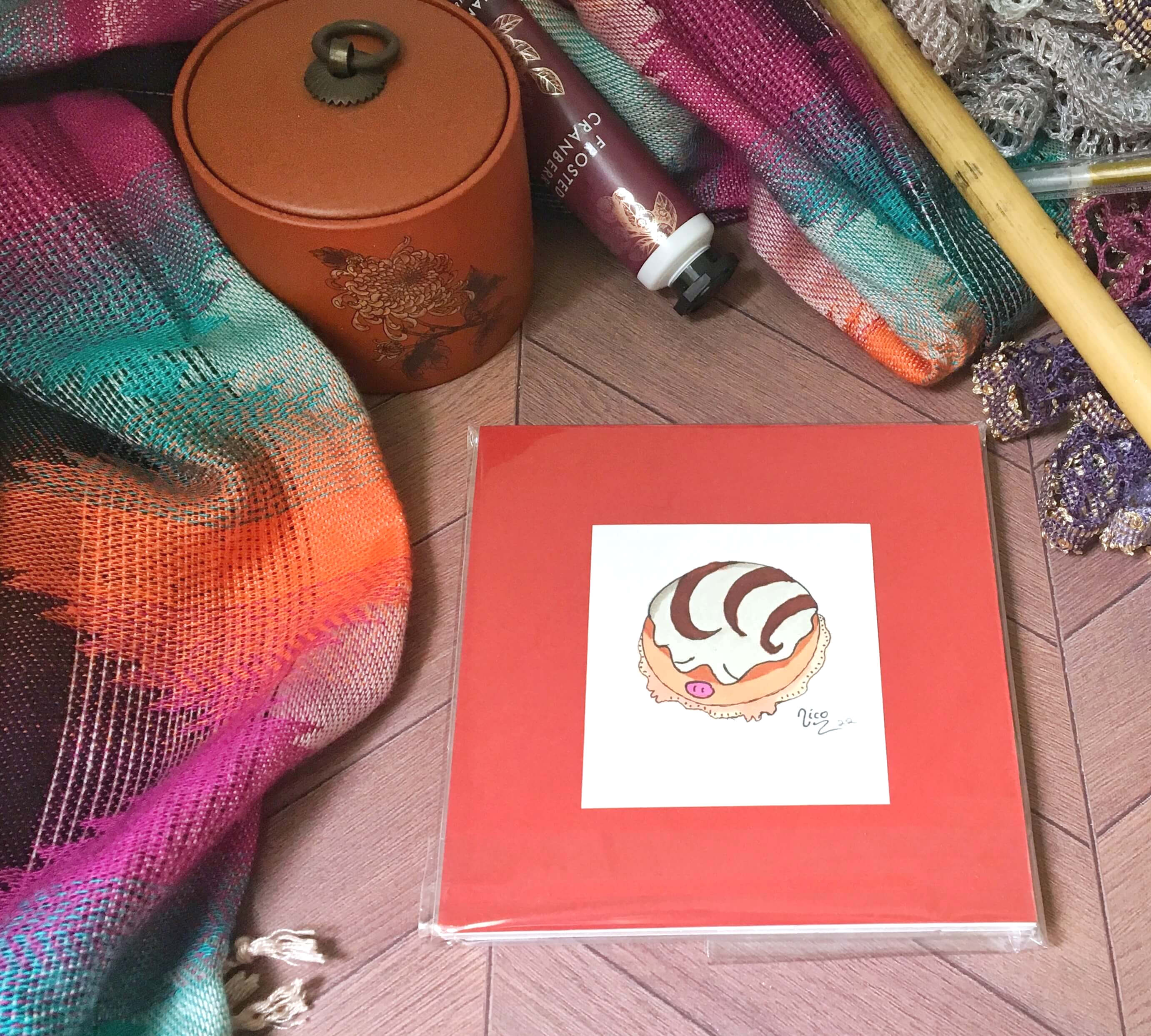 A sweet, punny, little Swinub cinnamon bun from my Inktober drawings series "The Pokébuns".