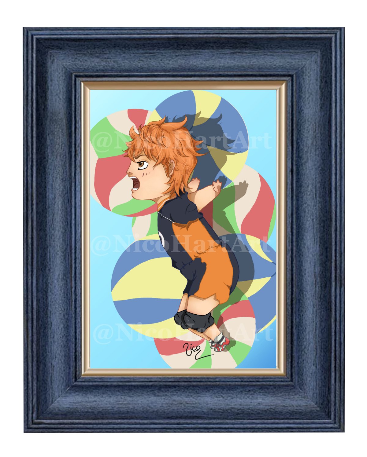 "I may be small, but I can fly!" I love Hinata and this quote. Hinata Shouyou fan art chibi with a volleyball background.