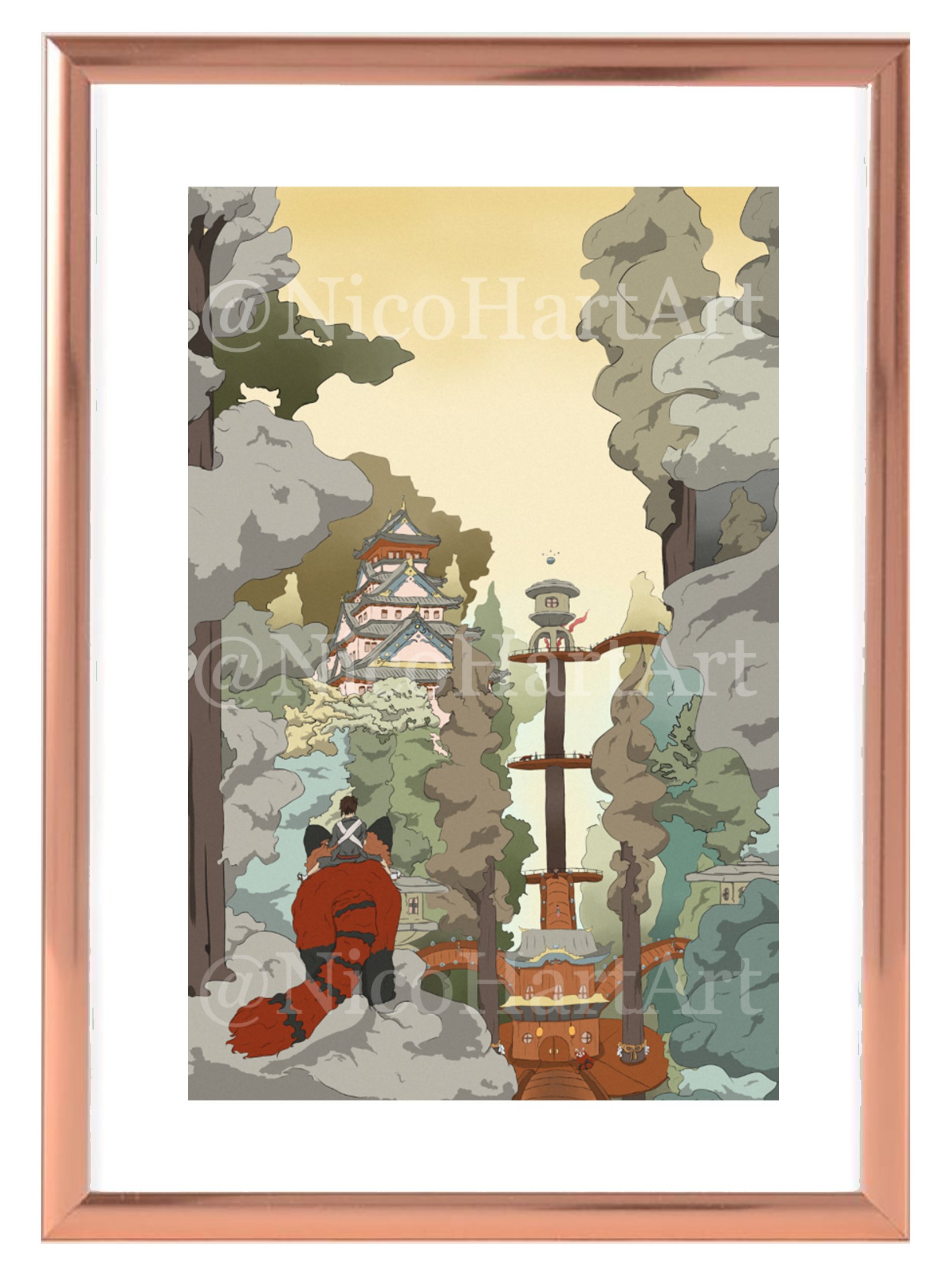 From my series the 100 views of Panda Kingdom, an original series made for some massive handmade byoubu (folding screens). Inspired by the 100 views of Edo series. Each print gives their unique angle of the Panda Kingdom scenery.