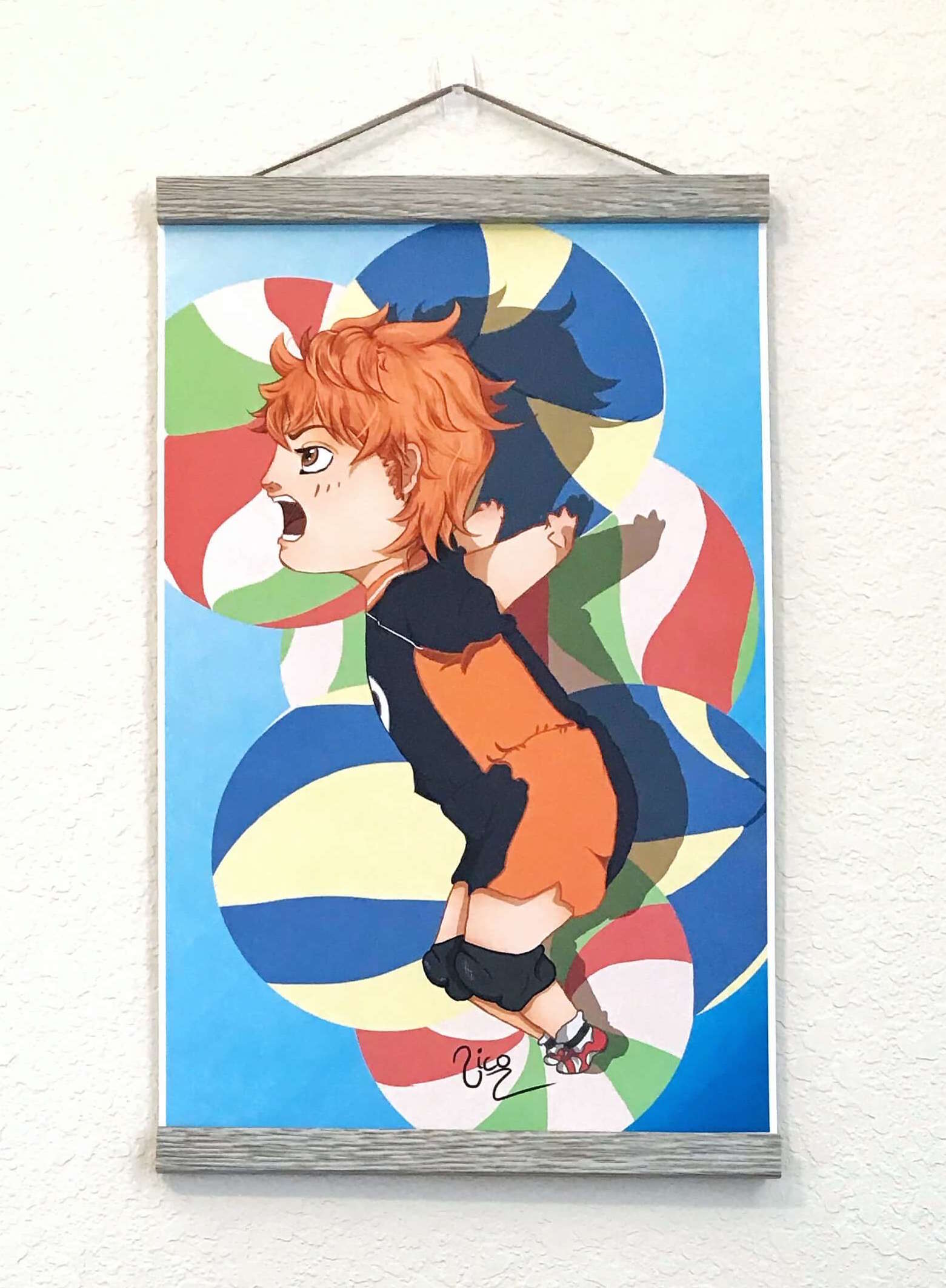 "I may be small, but I can fly!" I love Hinata and this quote. Hinata Shouyou fan art chibi with a volleyball background.