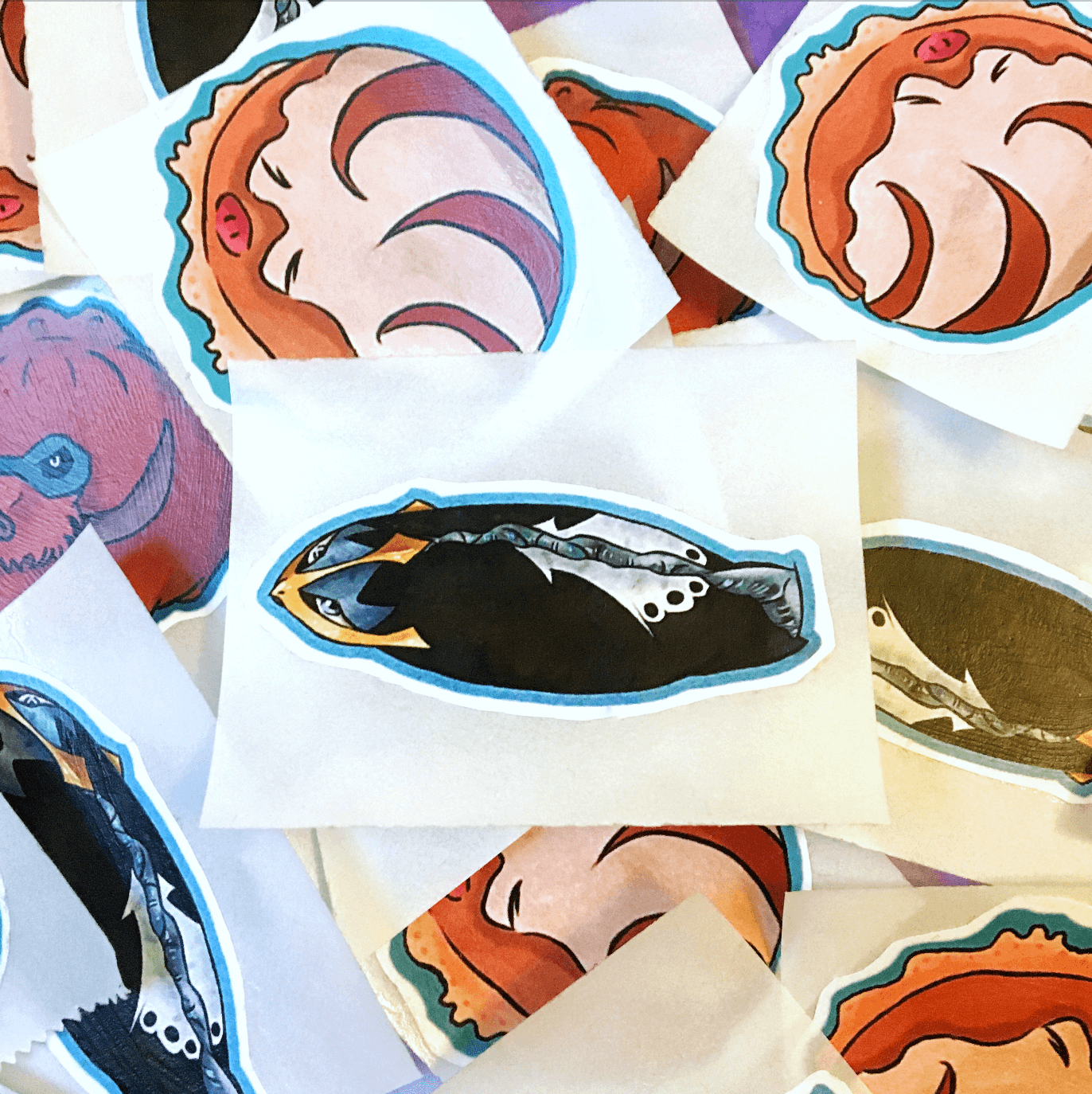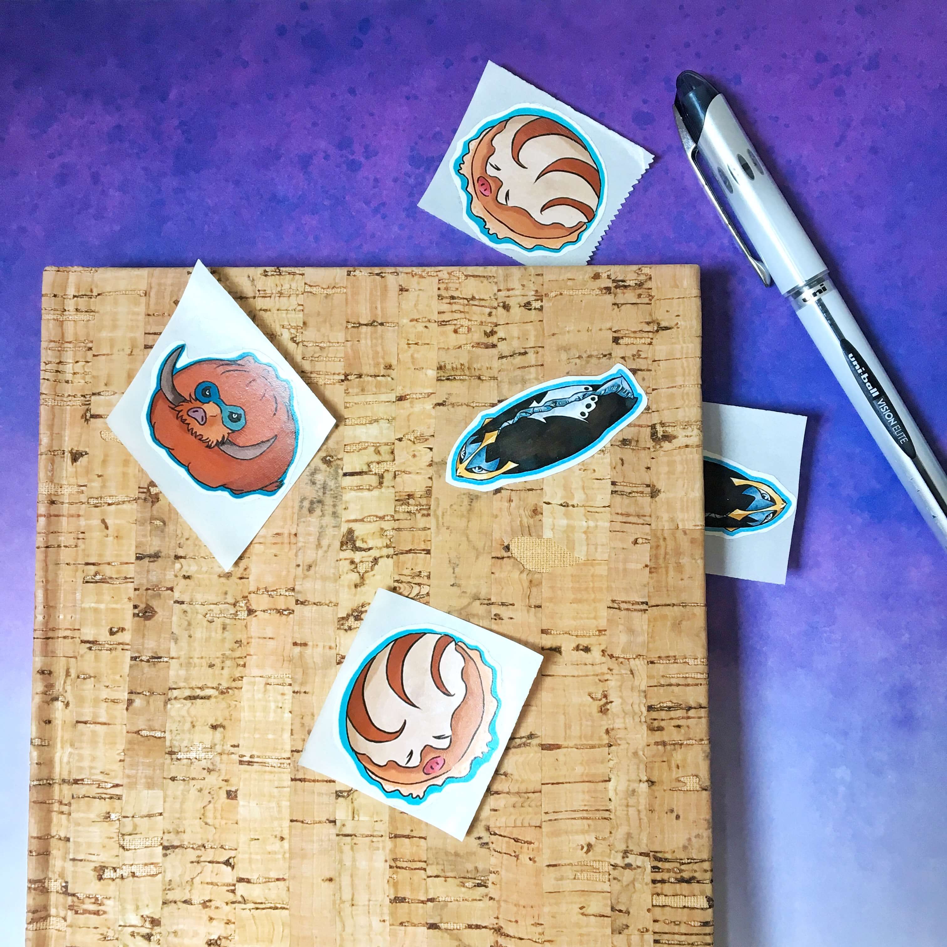 Roughly 1.5" x 1.5" and 1" x 2" stickers, great for decorating any surface.