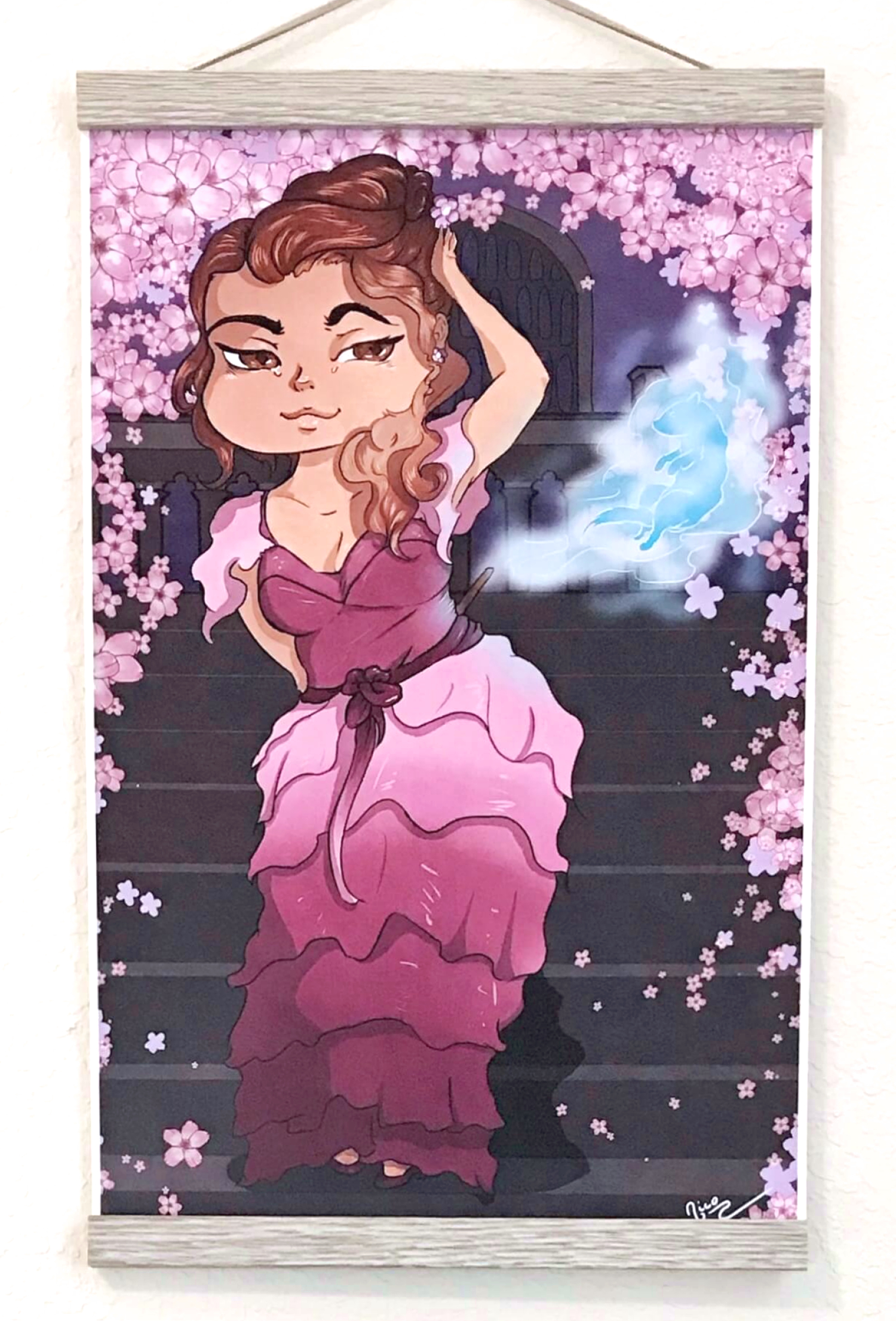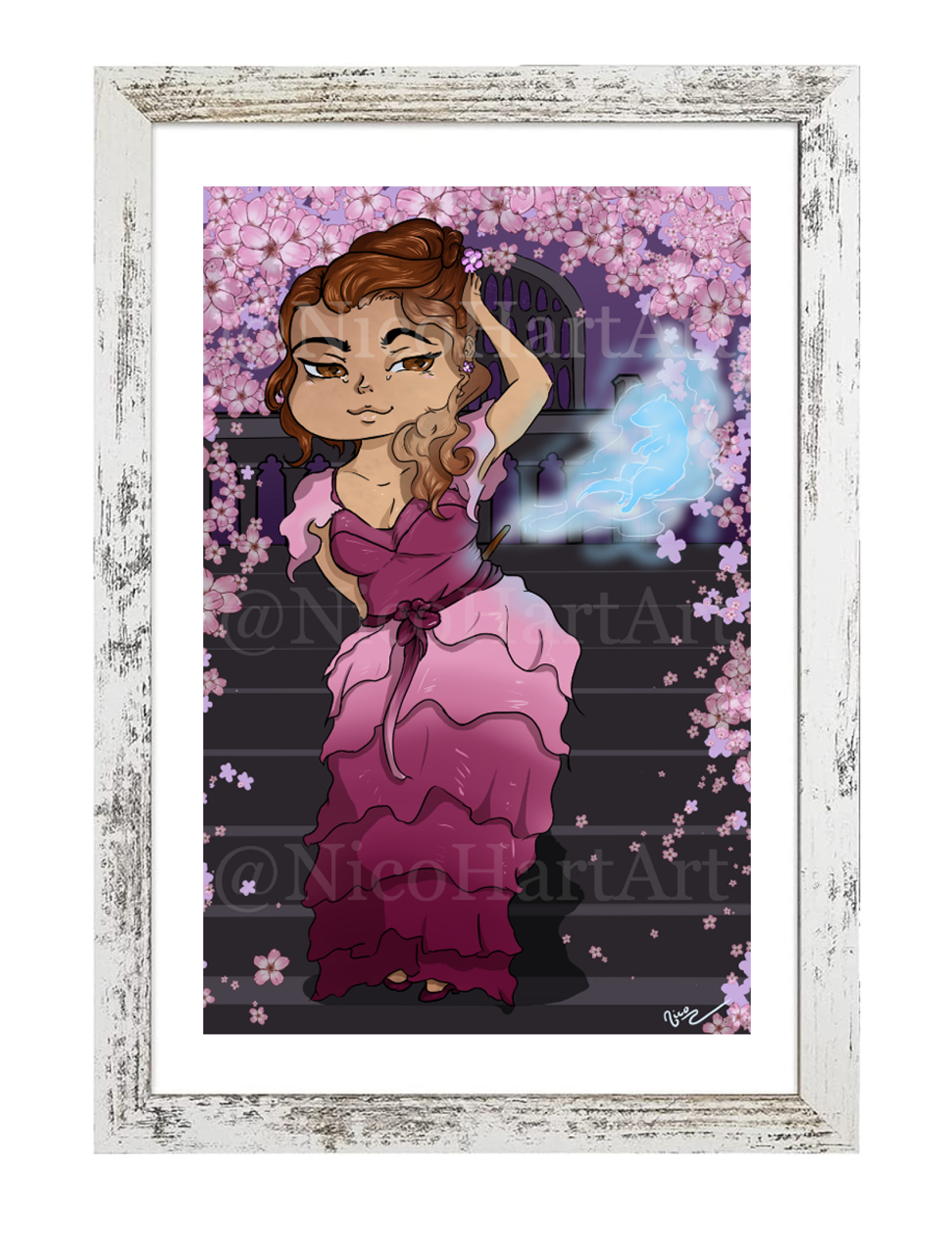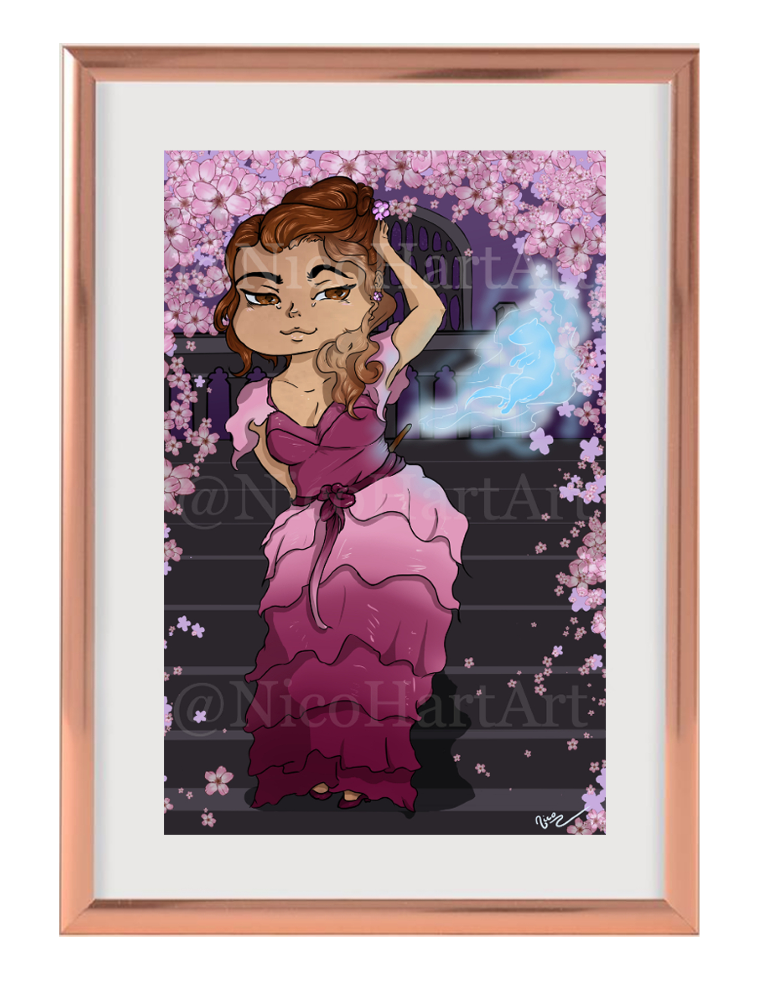 Hermione and her Otter patronus, shinning at the Yule Ball. Done in colors to match Ron as a pair.