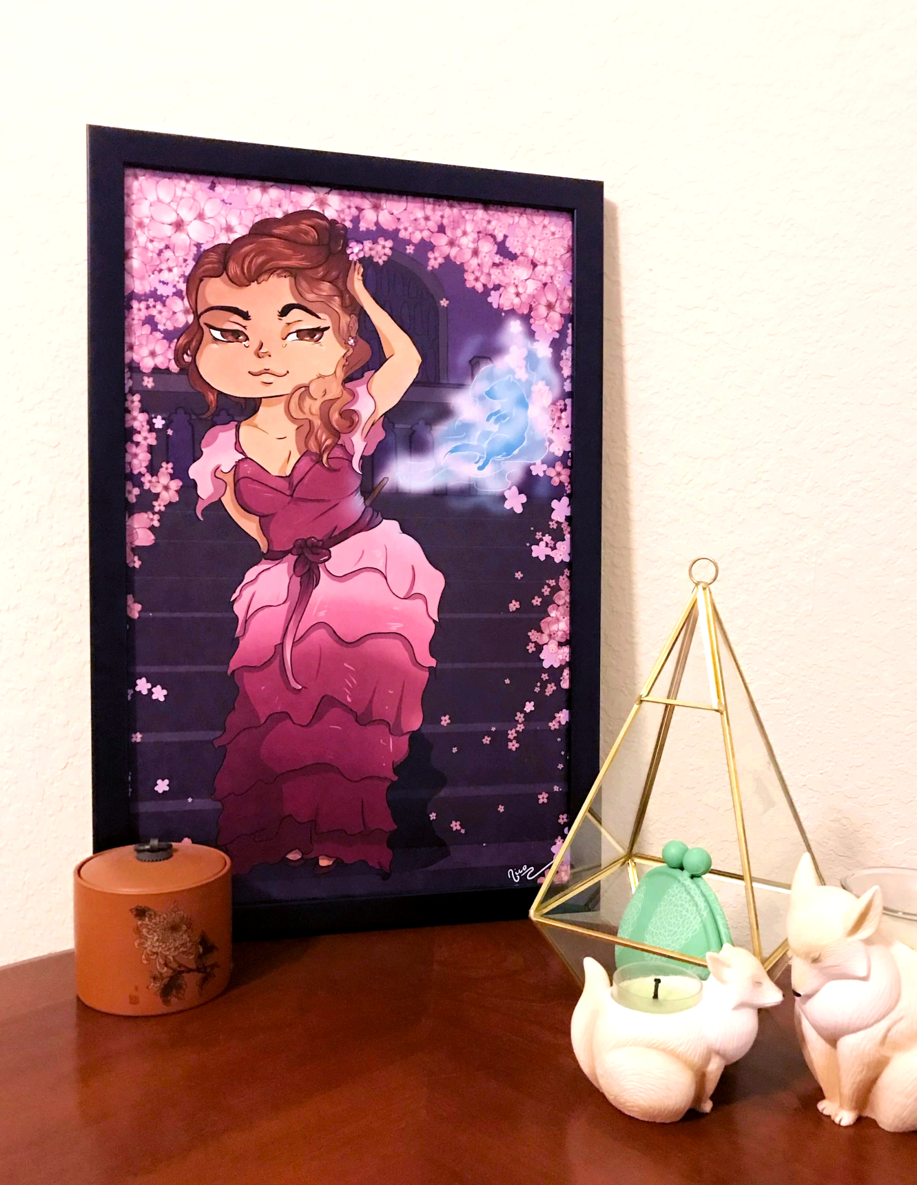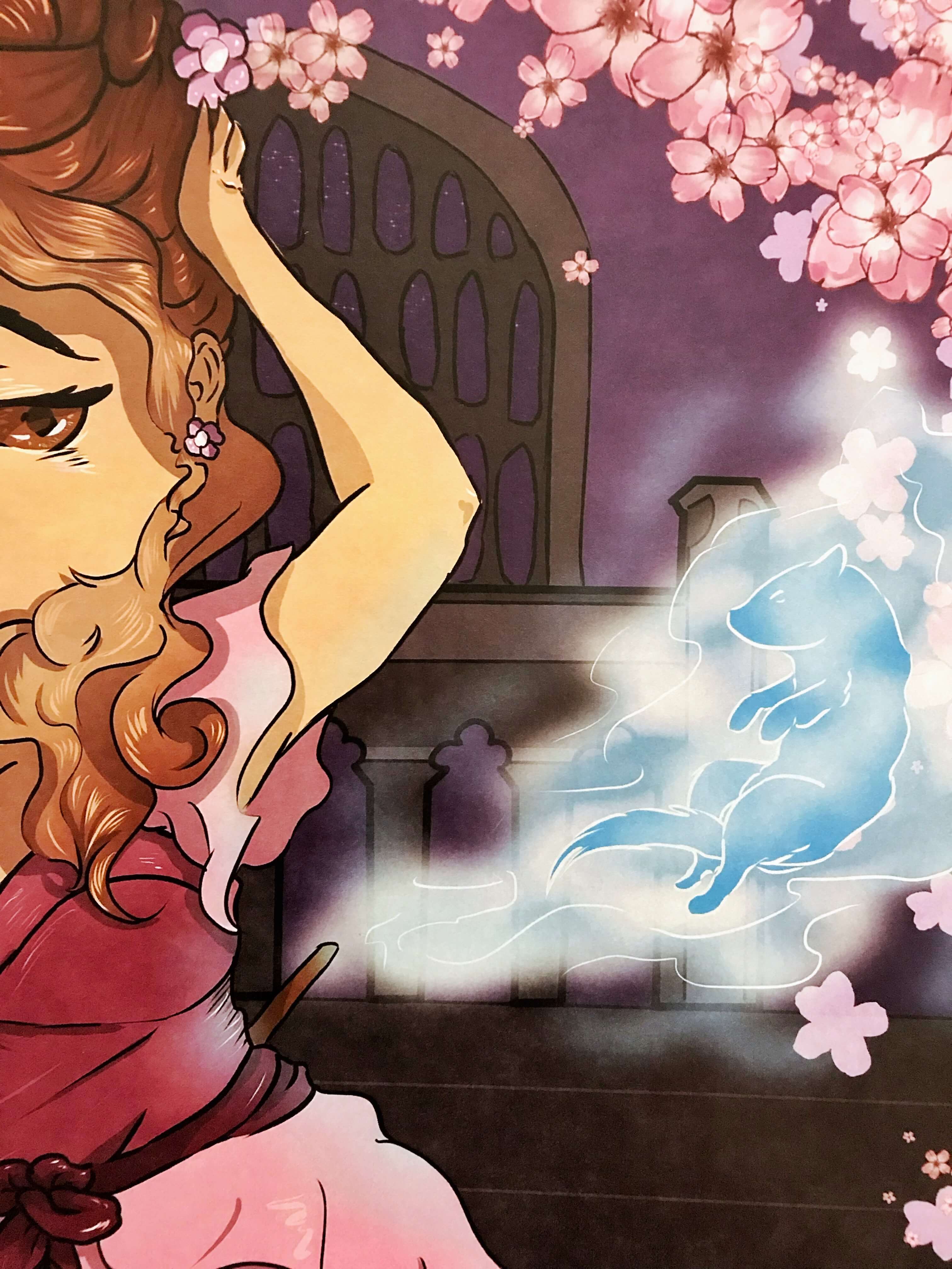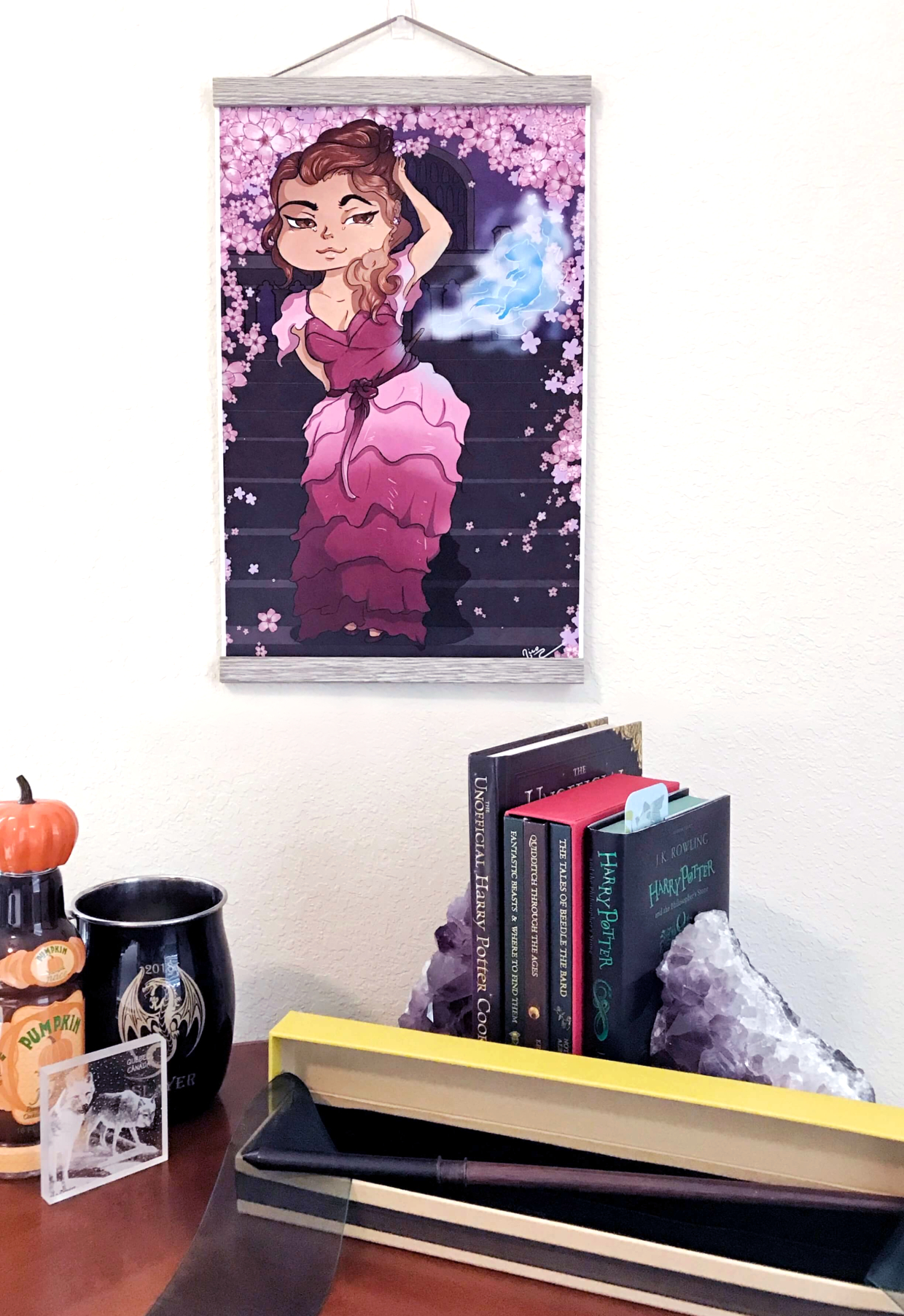 Hermione and her Otter patronus, shinning at the Yule Ball. Done in colors to match Ron as a pair.