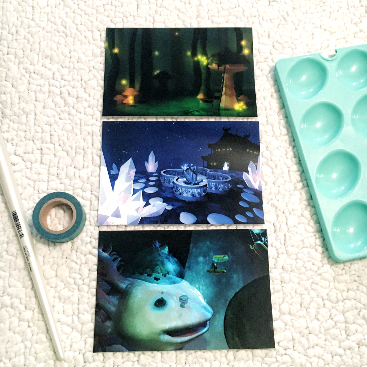 4x6" Giclee prints on glossy photo paper. Sealed in a plastic slip and signed.