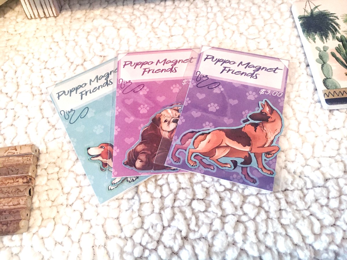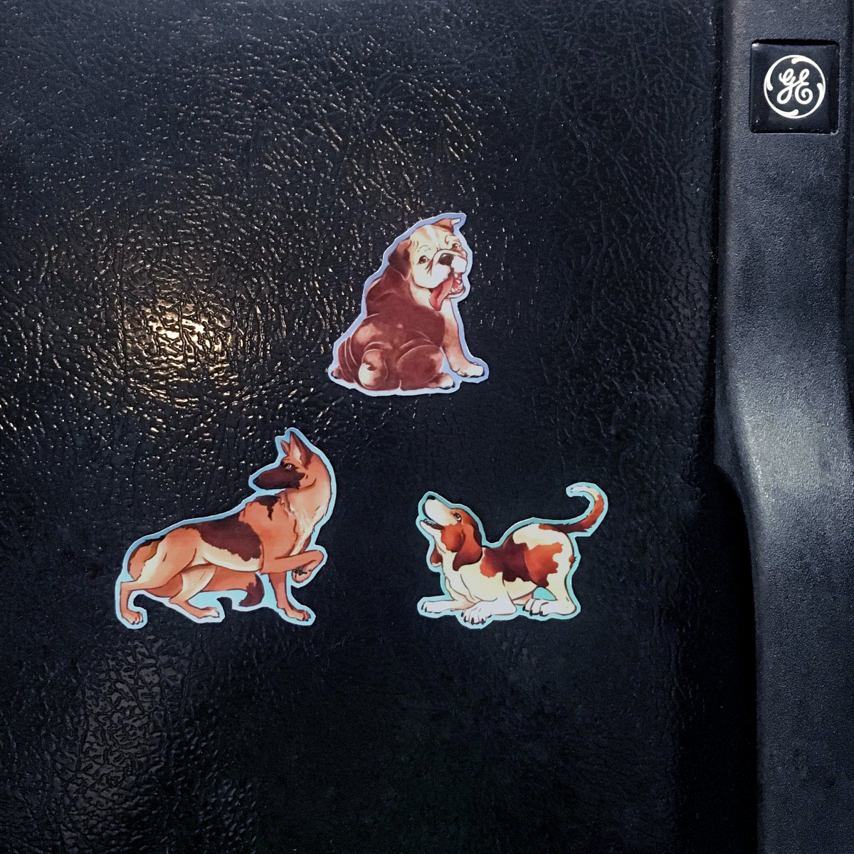 These pups are looking for good homes! They are great guards of fridges and come with care instructions for their new owners/parents.