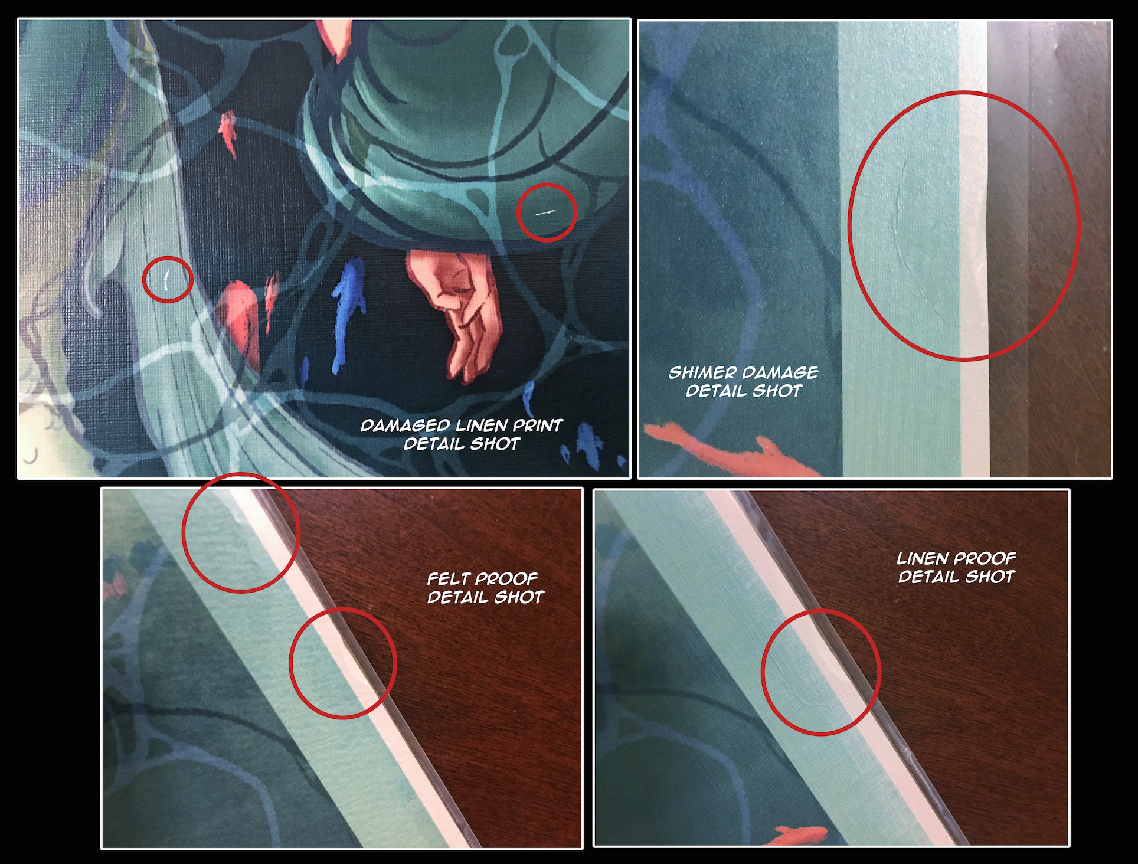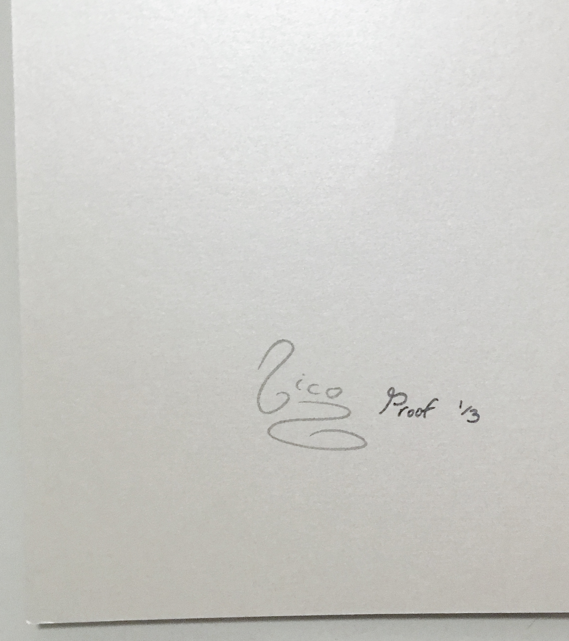All future prints will be on the Shimmer paper, but I have some extra's of the other test papers and the proof prints up for grabs early. Each is signed and numbered. on the back, Proof's 1-3 and Test Print 1-6.