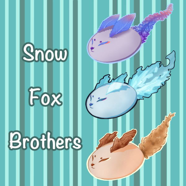 Similar to Snow bunnies in Japan, these triplets are the adorable animal counterparts to snowmen! Made from fresh powdered snow, scraps of enchanted flowers, bark, and ice, and sculpted with love. The fox brothers are here and ready to impress!
