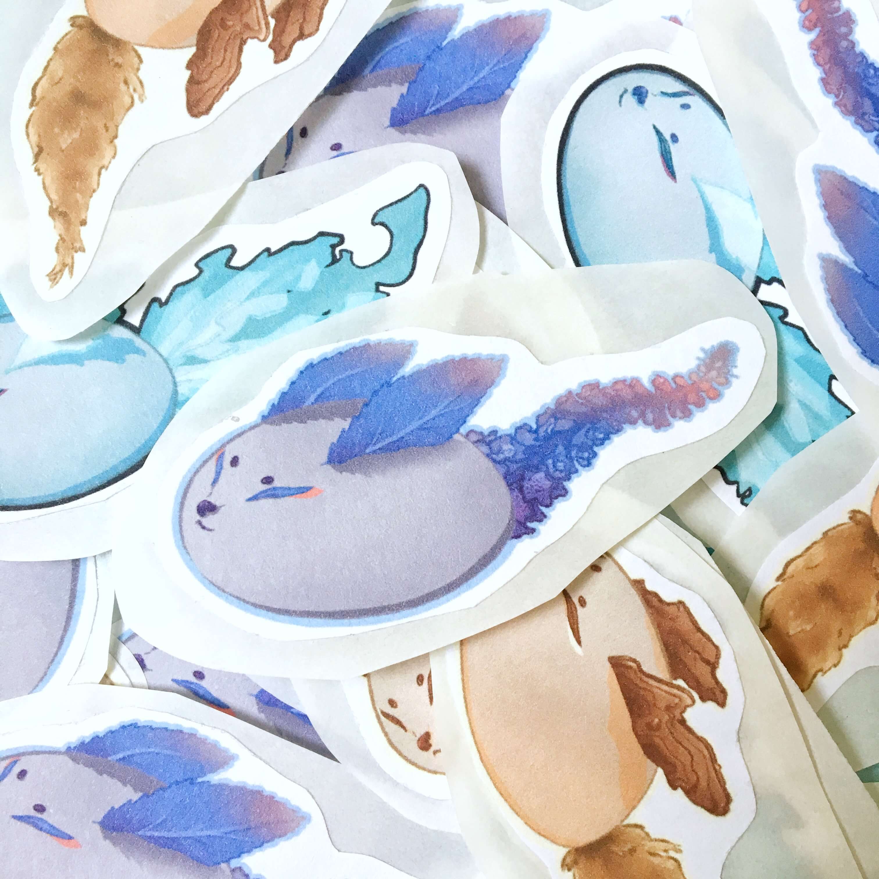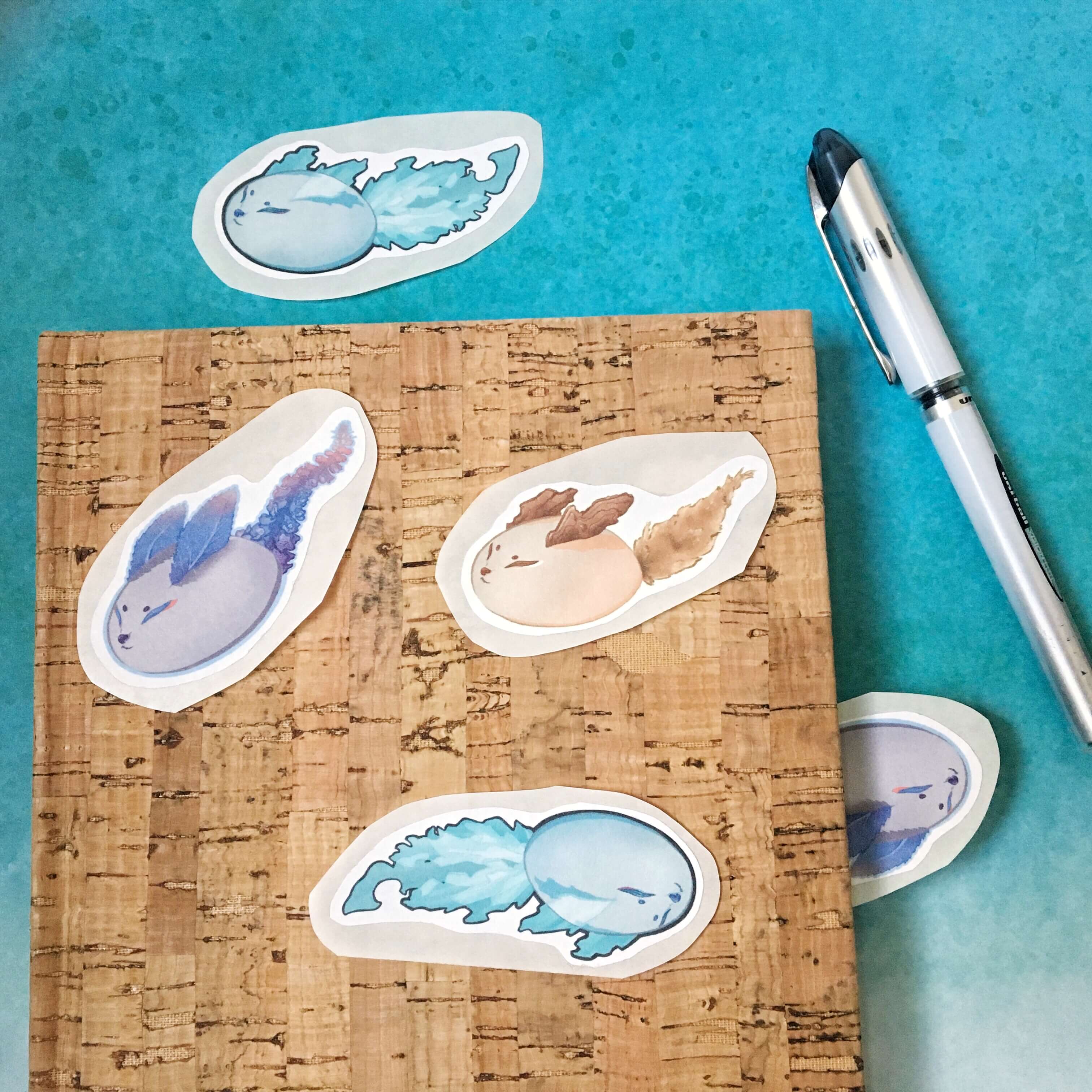 Roughly 1.5" x 1.5" and 1" x 2" stickers, great for decorating any surface.