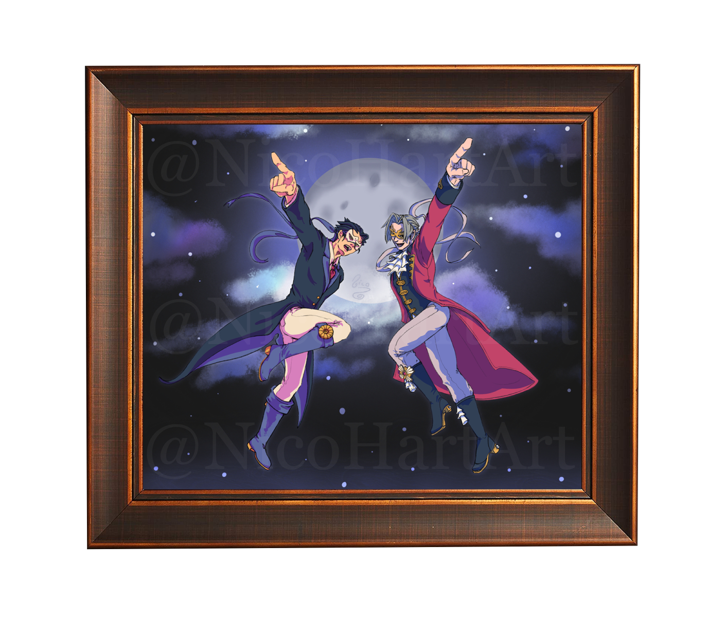 Miles finally convinced Phoenix to wear it! Now they both can cosplay properly as the newest heroes, the great and the marvelous, Ace Attorneys deMasque!
