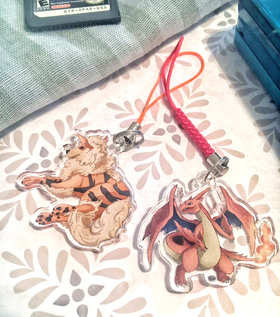 Double-sided 1.5" acrylic charms of two of my favorite pokémon. On one side they wink and stick out their tongues, on the other, they are vibing.